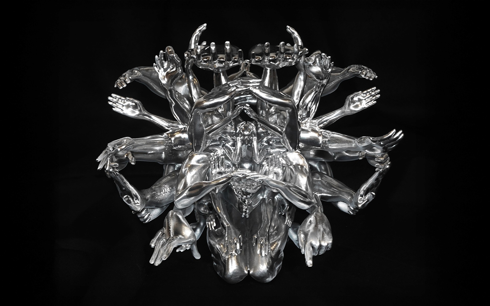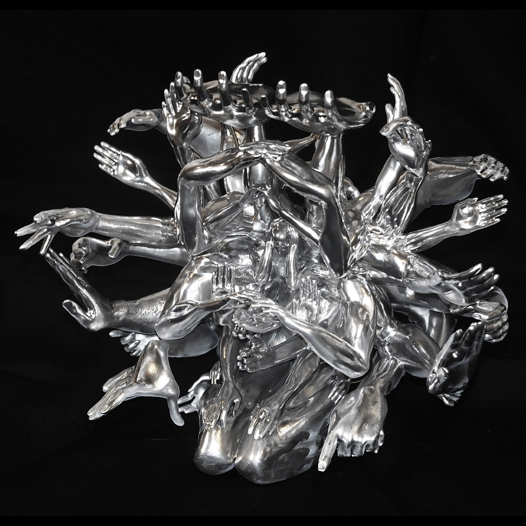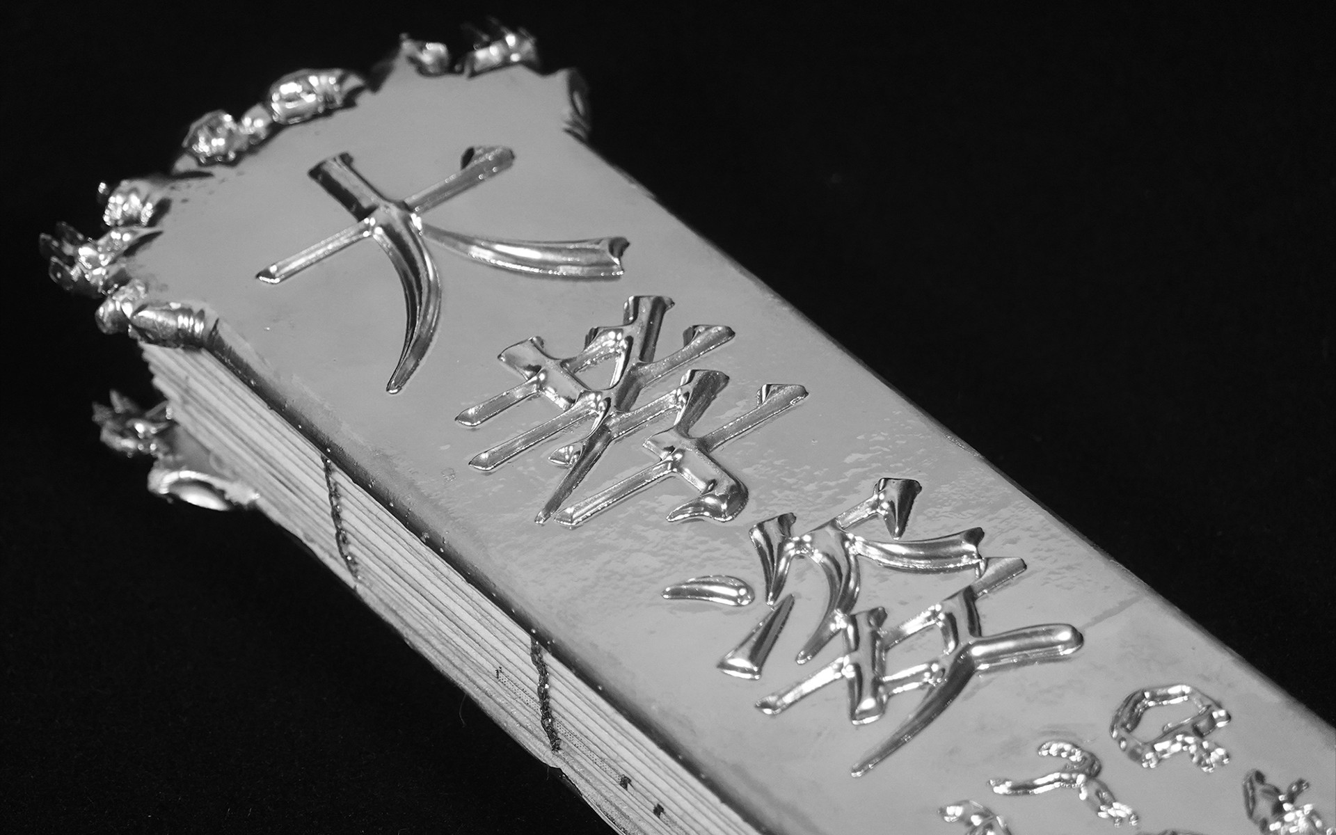 The book incorporates elements from traditional Chinese educational tools, taking the shape of a ferule, historically associated with instruction and discipline. The 24 postures are realised as silver-toned sculptural figures, with one piece that merges and reflects all postures, lifting the book toward the initiates. A beaded string of 24 small heads is integrated into the book, echoing the ferule and manifesting the structured, ceremonial qualities of the work.
